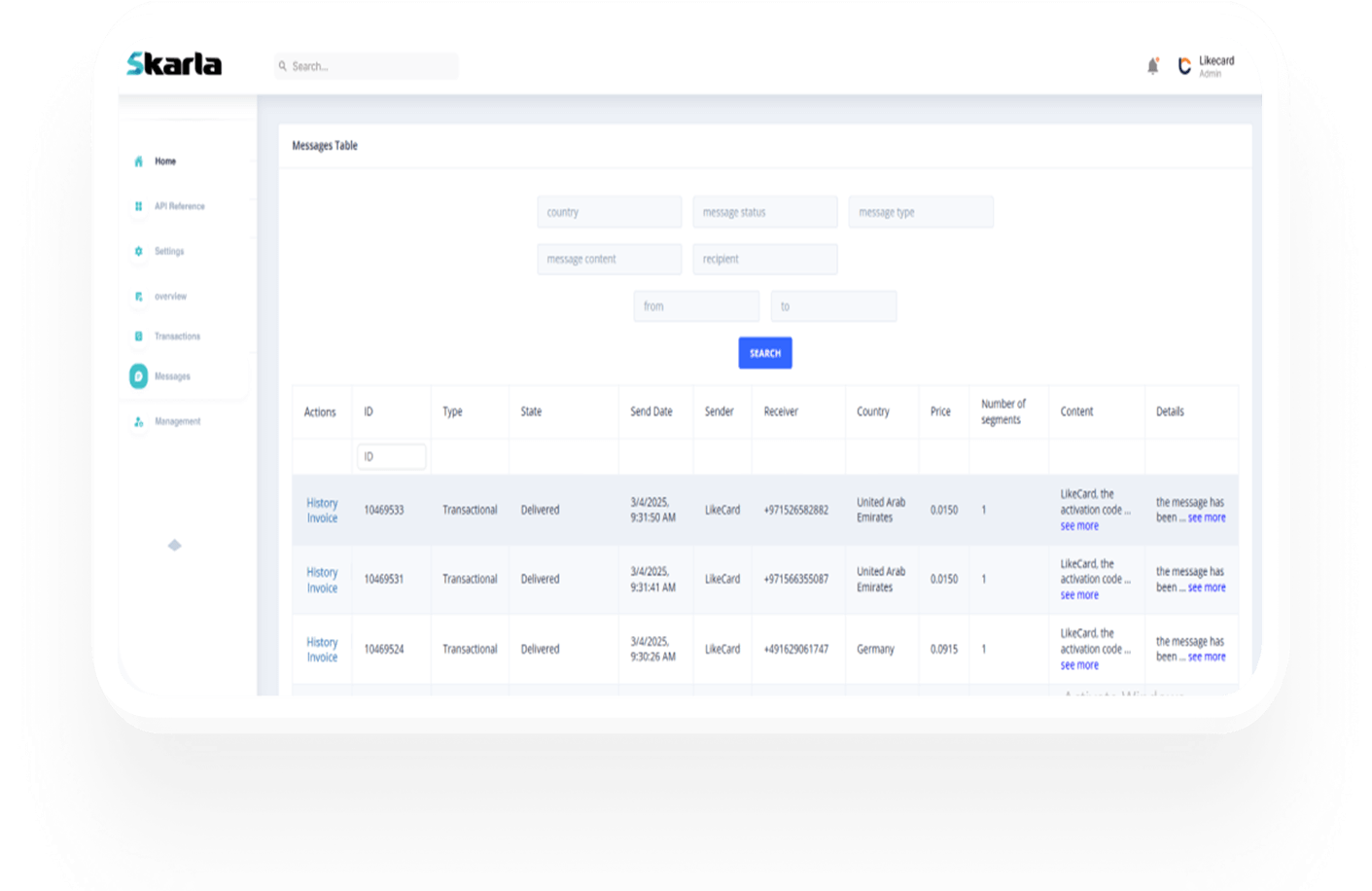 Ensure seamless, secure, and reliable verification across local and global markets with Skarla’s Verification Service (VER). As a leading verification provider in the region, we offer a comprehensive and user-friendly platform to support businesses in managing and securing their communication.
